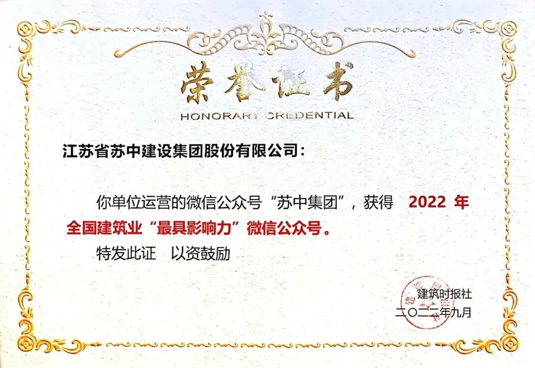 “蘇中集團”微信公眾號蟬聯全國建筑業“最具影響力”微信公眾號