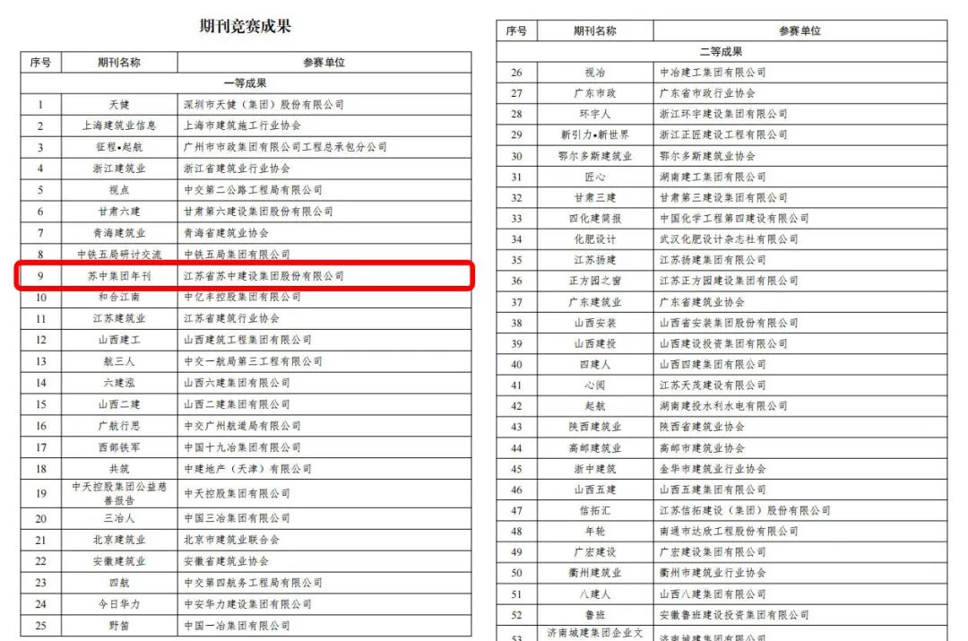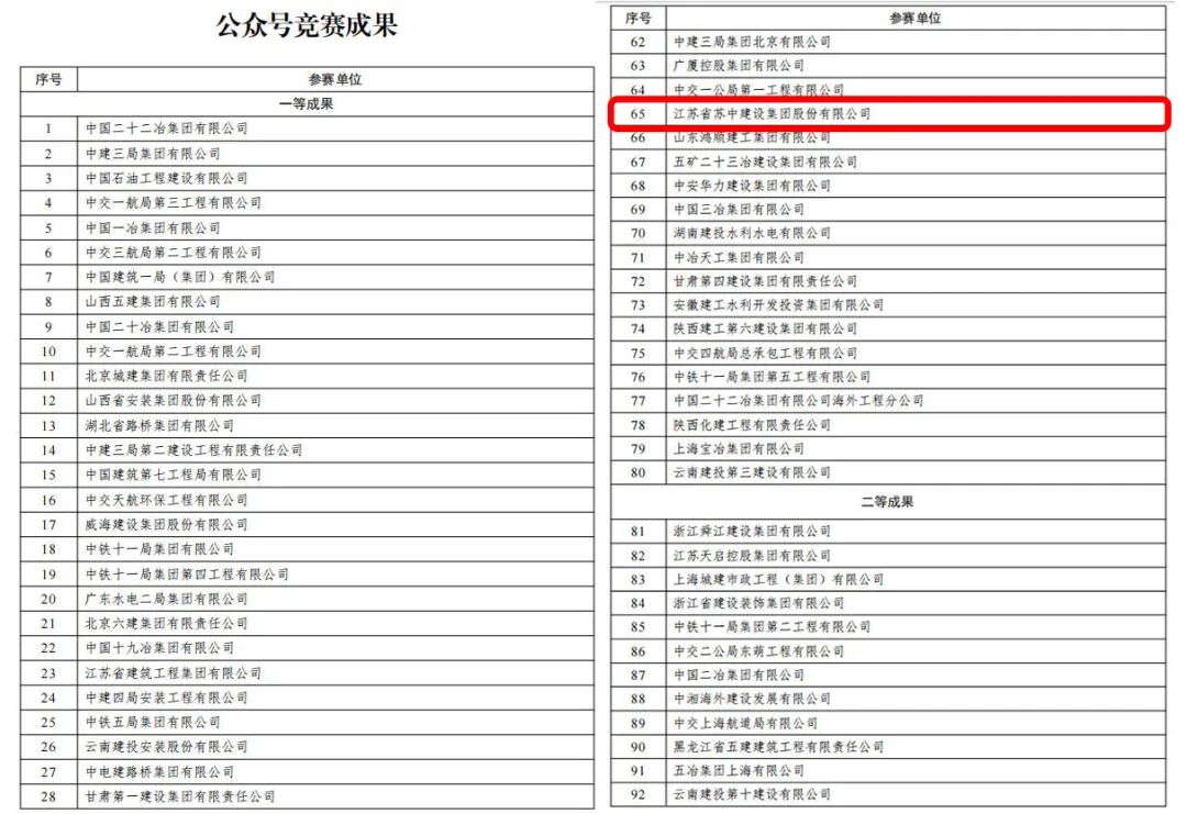 10月中下旬,中國(guó)施工企業(yè)管理協(xié)會(huì)公布了2025年工程建設(shè)企業(yè)文化建設(shè)系列活動(dòng)競(jìng)賽成果,經(jīng)企業(yè)申報(bào)、行業(yè)推薦、專(zhuān)家審核、綜合評(píng)定等環(huán)節(jié),蘇中集團(tuán)申報(bào)的“蘇中集團(tuán)報(bào)” “蘇中集團(tuán)年刊” “蘇中集團(tuán)網(wǎng)站” “蘇中集團(tuán)微信公眾號(hào)”等四項(xiàng)企業(yè)文化建設(shè)成果分別榮獲報(bào)紙競(jìng)賽、期刊競(jìng)賽、網(wǎng)站競(jìng)賽、公眾號(hào)競(jìng)賽一等成果,集中彰顯了蘇中融媒體四大核心平臺(tái)的行業(yè)認(rèn)可度。